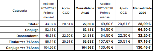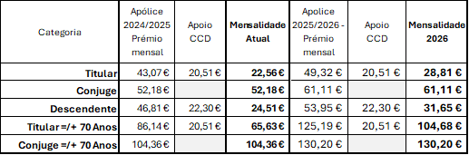 A Direção deliberou submeter à decisão dos segurados/subscritores as duas opções que, apesar do aumento dos prémios e dos ajustamentos nas garantias, se apresentam como as mais vantajosas, mantendo a atual rede médica, AdvanceCare.