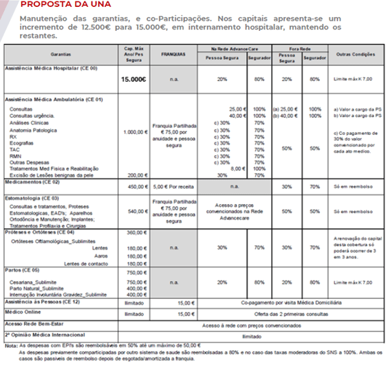 UNA: Nesta proposta regista-se um aumento do capital de internamento de 12.500€ para 15.000€.